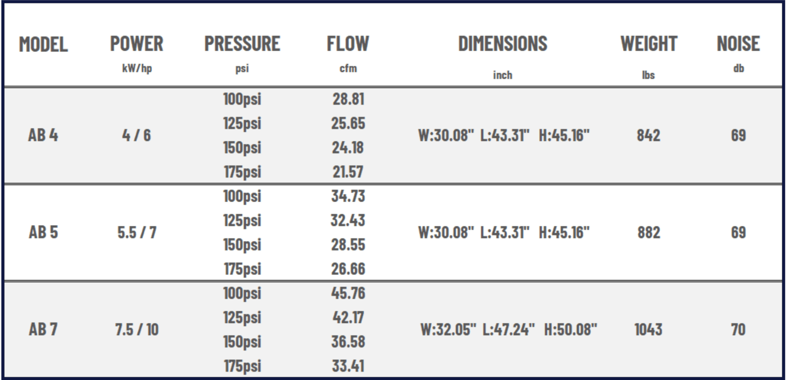 AB 4-7 OIL INJECTED FIXED SPEED AIR COMPRESSORS
