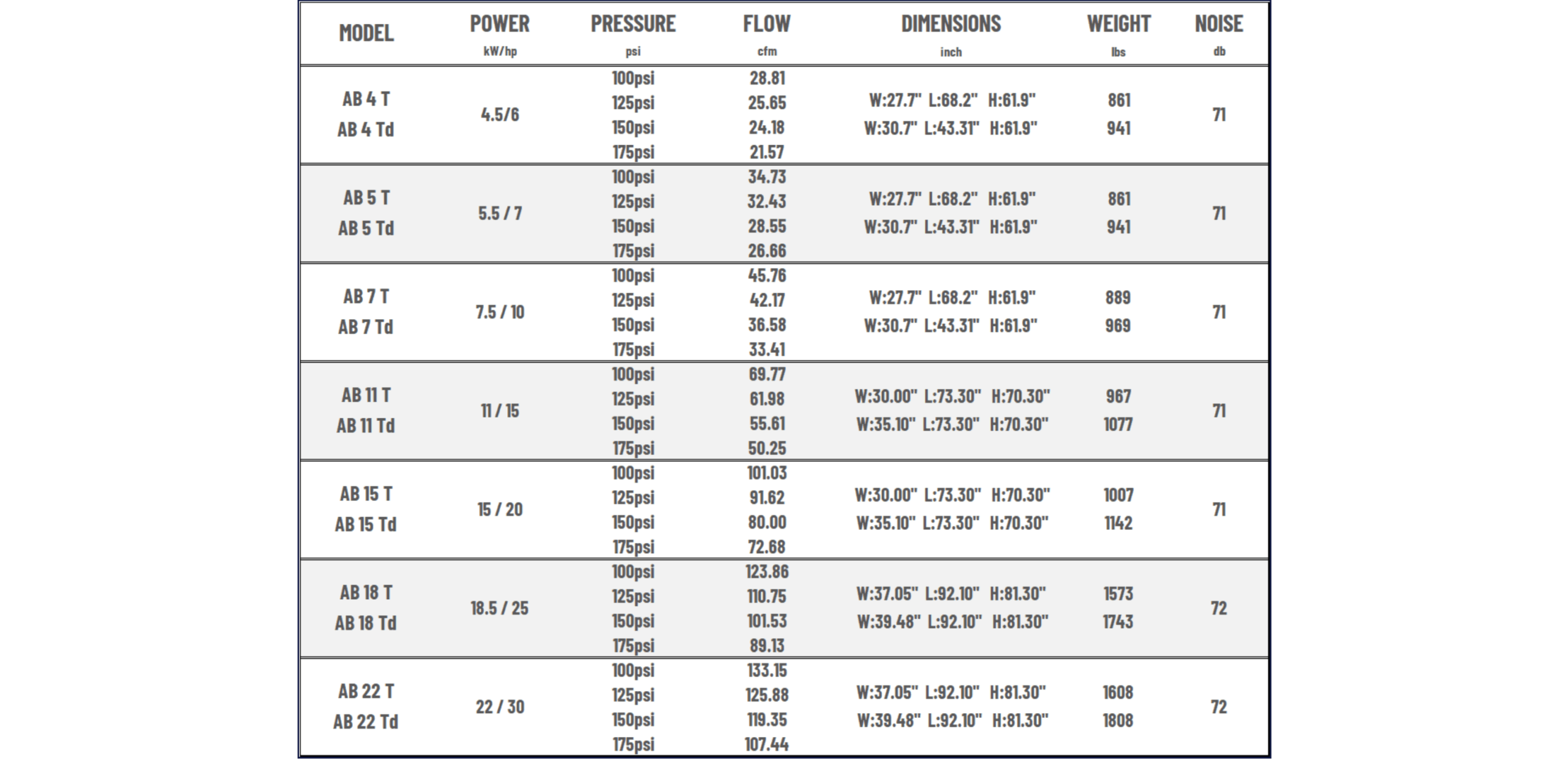 AB 4-22 T/Td ALL-IN-ONE OIL INJECTED FIXED SPEED AIR COMPRESSORS