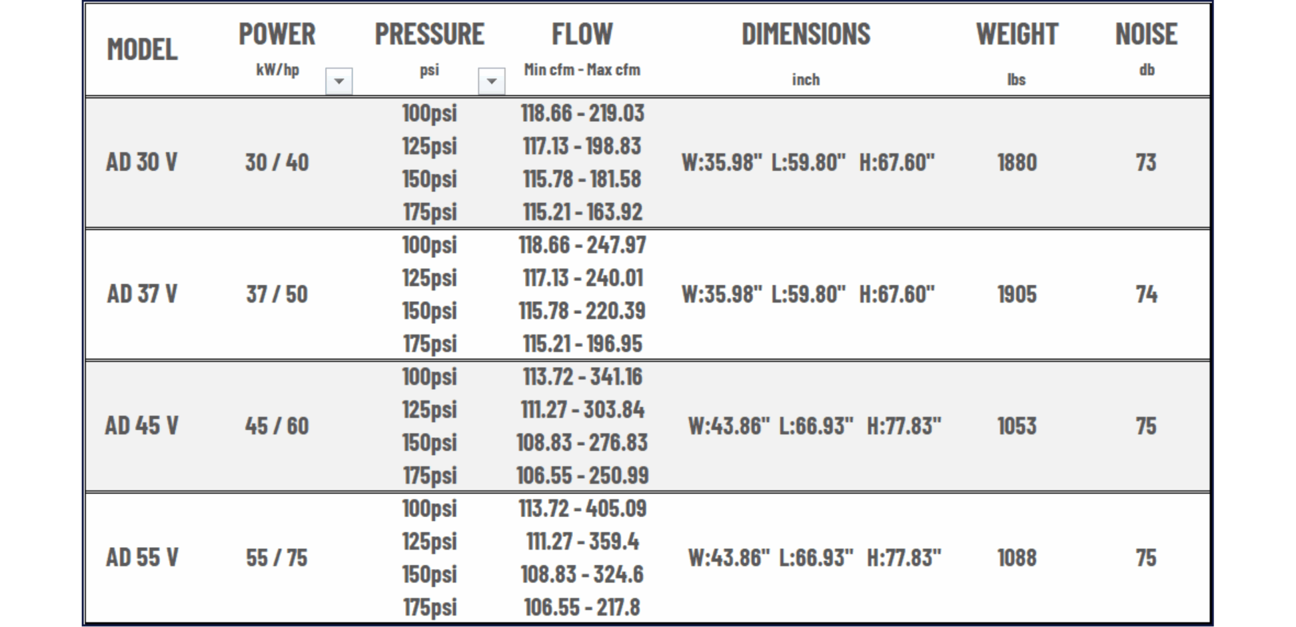 AD 30-55 V OIL INJECTED FIXED SPEED AIR COMPRESSORS